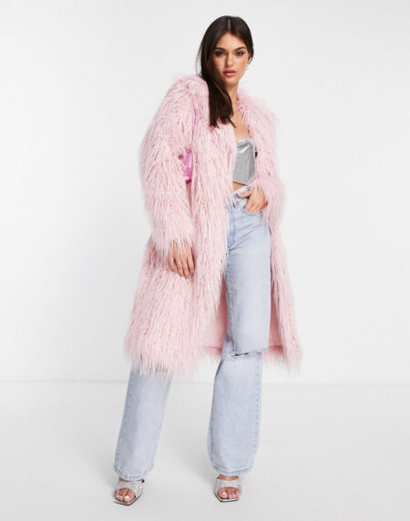 $399.00Faux Longline Coat in Light Pink